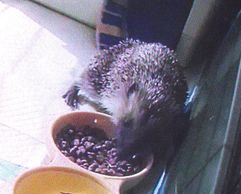 Although thriving and finding his own natural food, he still visits every day for a snack of the hedgehog food he was raised on.